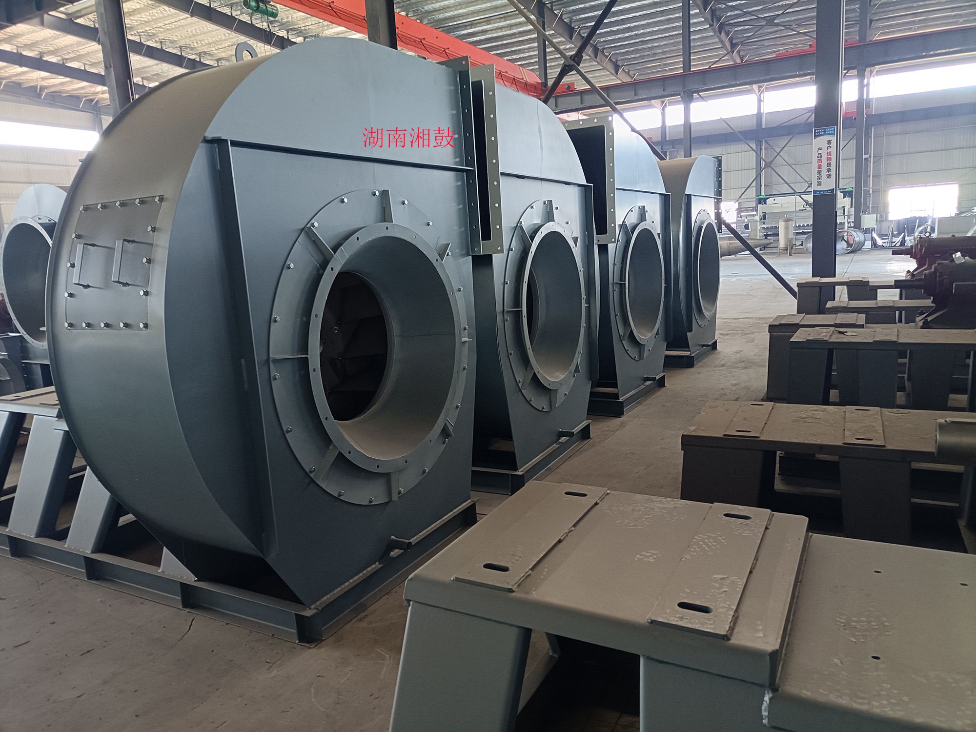 湖南湘鼓鼓風機制造有限公司(長沙第二風機廠)原廠建于1978年,機械部定點生產風機的企業(yè),原設有長沙地區風機檢測站。于2016年重組遷入湖南益陽。公司占地32畝,擁有各類主要加工檢測設備100余臺套,是目前湖南省具一定規(guī)模的鼓風機及配件制造廠家。現已生產離心式通風機(又稱離心風機)和羅茨鼓風機二大系列,按用途分為高溫風機、不銹鋼高溫風機、不銹鋼離心通風機、造紙通風機、襯膠防腐風機、除塵風機、脫硫塔風機、增壓風機、鍋爐風機、掃路車風機、貼陶瓷耐磨風機、窯爐風機(磚窯風機)、煤粉灰輸送風機、燃燒器助燃鼓風機、斜槽高壓風機、化鐵爐風機、造氣鼓風機、養(yǎng)殖增氧風機、污水處理曝氣鼓風機、脫硫氧化鼓風機、氣力輸送鼓風機、印刷送風機、電鍍槽鼓風機等三十多個系列通用型及十多個系列特種型風機,按國標型號分:4-72,T4-72,4-68,4-79,9-19,9-26,8-09,9-12,C6-48,C6-46,C4-73,GY4-68,GY4-73,GY6-51,GY8-39,GY9-38,GY6-30,GY6-48,GY6-41,GY5-51,GY5-47,GY5-48,GD30K2-12,以及XG80-500口徑的羅茨鼓風機。更多產品詳細介紹在首頁菜單檔上的產品中心 http://www.cshfhb.com/pclass/?classa=1